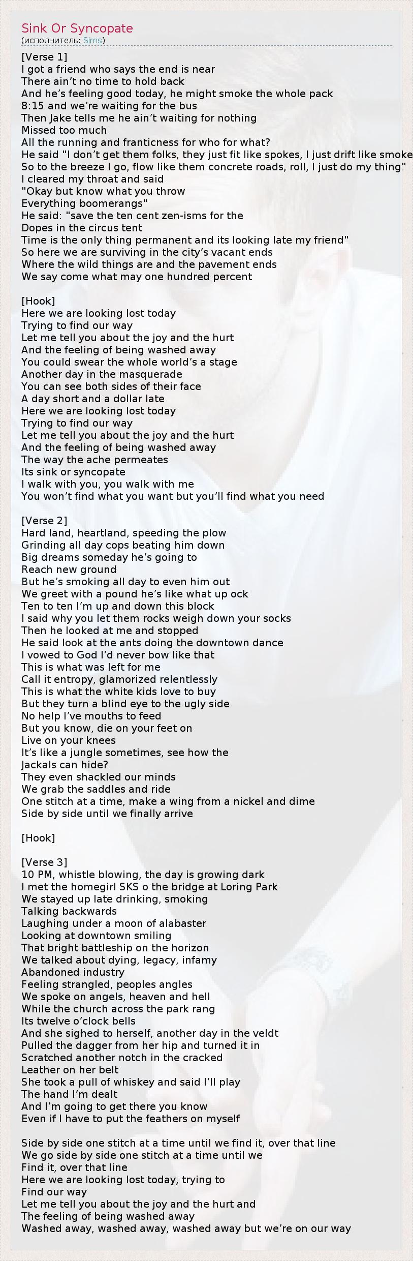 А как ты думаешь, о чем песня "Sink Or Syncopate" ?