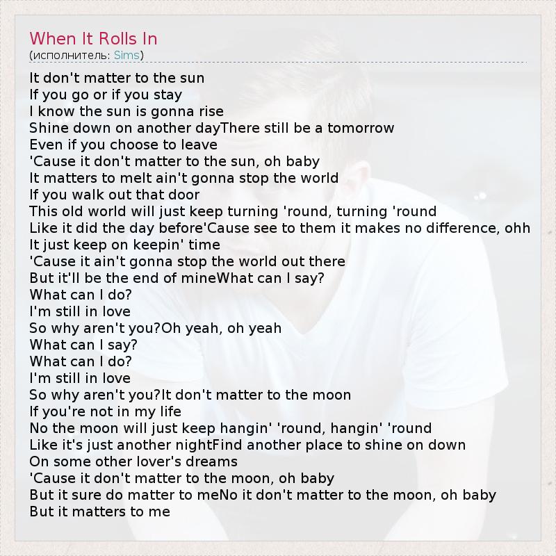 А как ты думаешь, о чем песня "When It Rolls In" ?