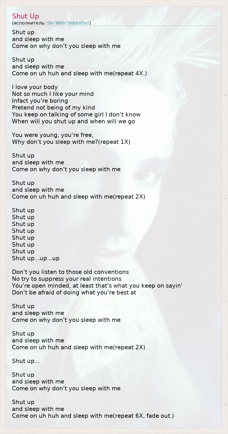 Come on uh huh and sleep with me(repeat 6X, fade out.)