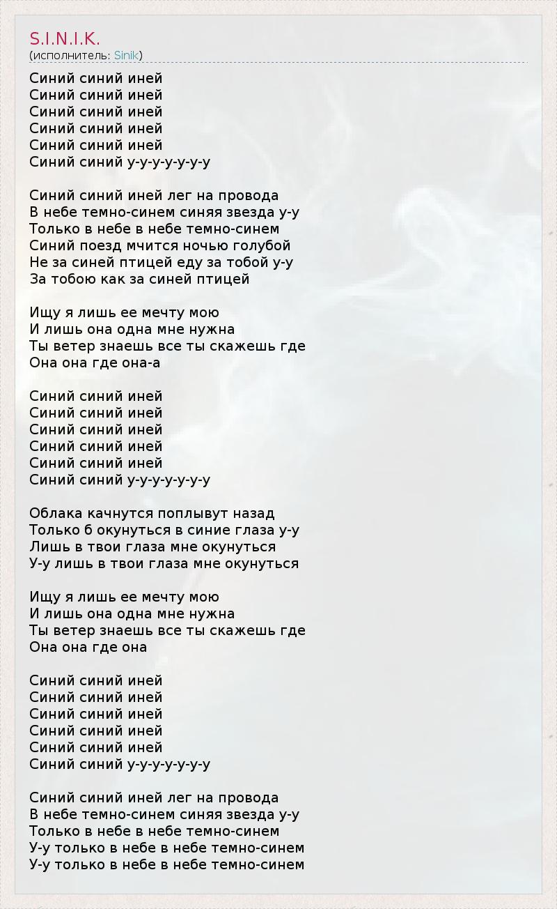 А как ты думаешь, о чем песня "S.I.N.I.K." ?