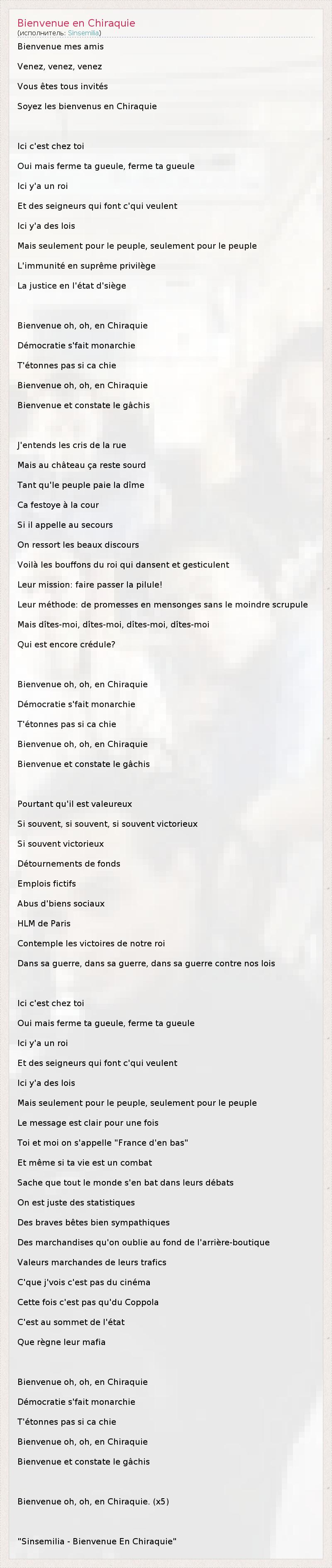 А как ты думаешь, о чем песня "Bienvenue en Chiraquie" ?
