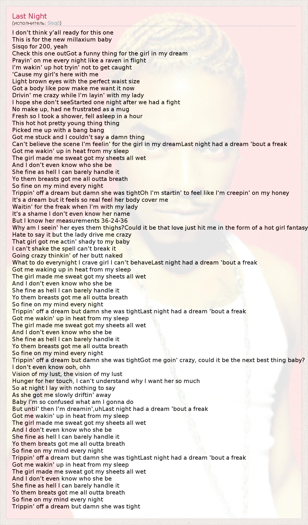 What to do everynight I crave girl I can't behaveLast night had a dream 'bout a freak