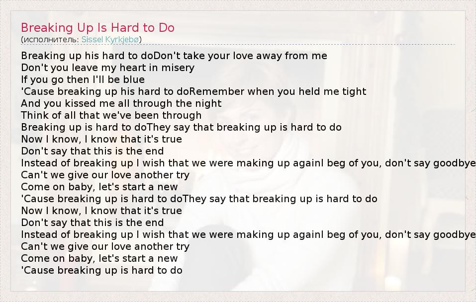 А как ты думаешь, о чем песня "Breaking Up Is Hard to Do" ?