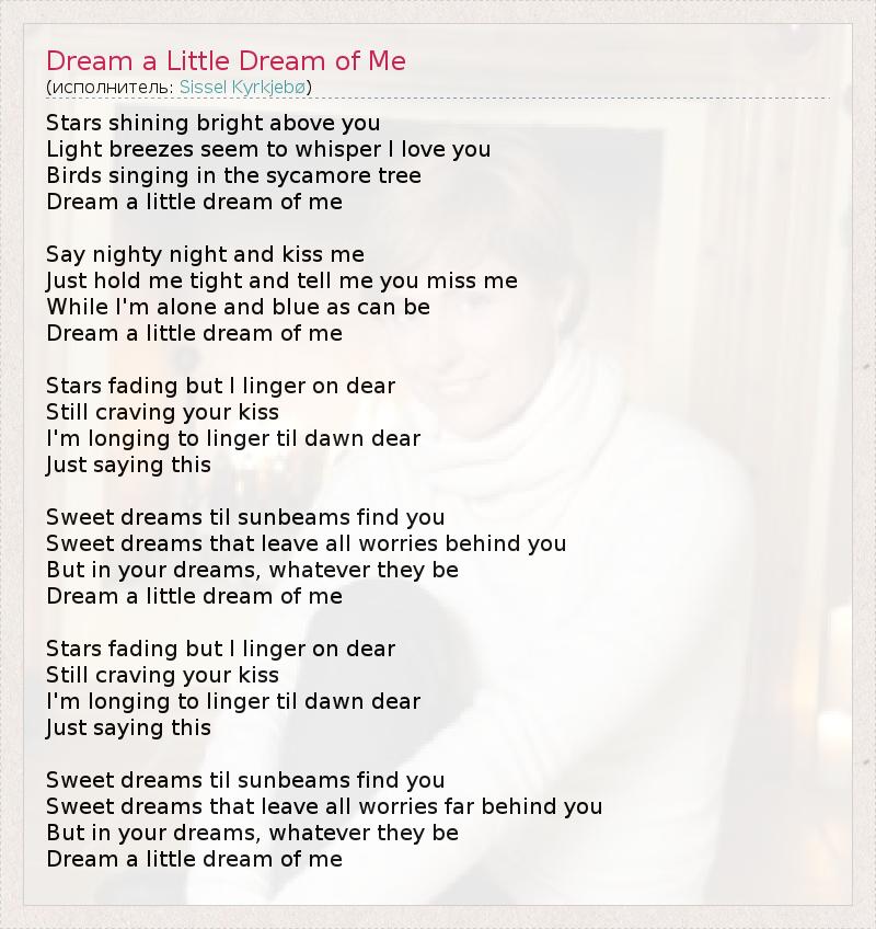 А как ты думаешь, о чем песня "Dream a Little Dream of Me" ?