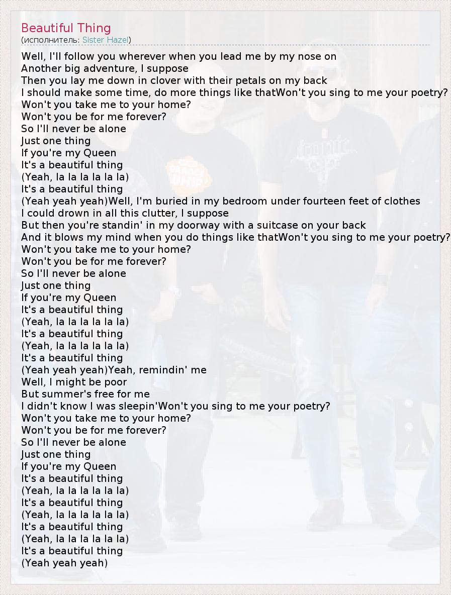 А как ты думаешь, о чем песня "Beautiful Thing" ?