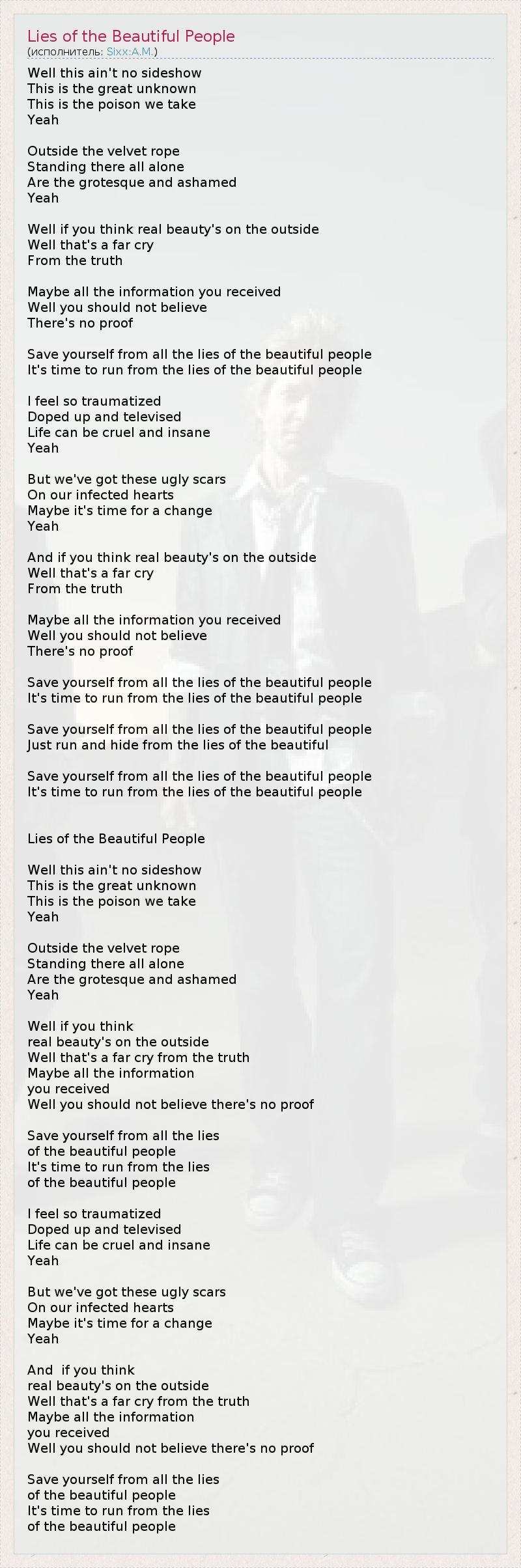 ГлавнаяИсполнителиSixx:A.M.Lies of the Beautiful People