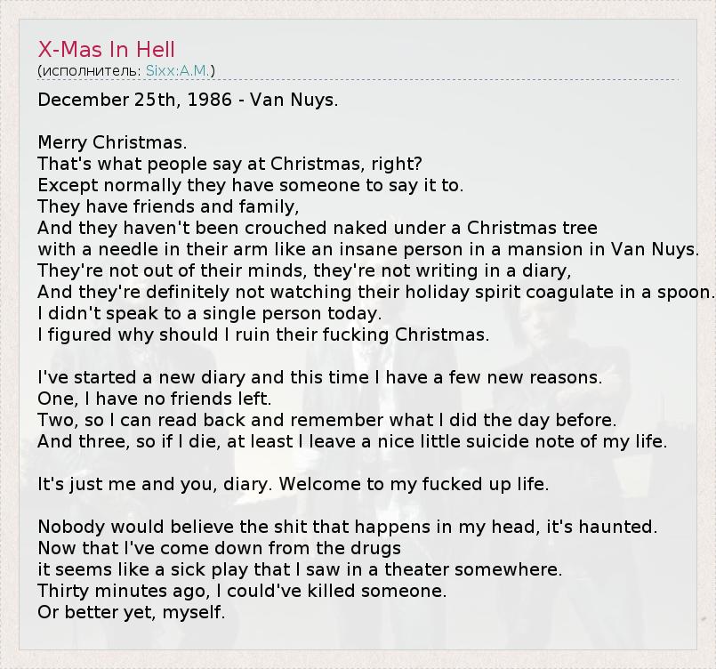 А как ты думаешь, о чем песня "X-Mas In Hell" ?