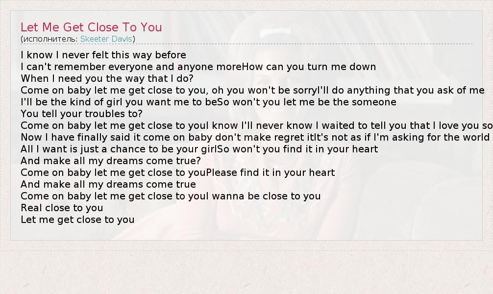 А как ты думаешь, о чем песня "Let Me Get Close To You" ?