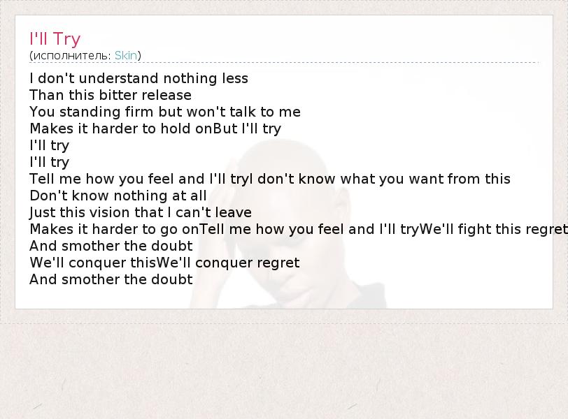 Makes it harder to go onTell me how you feel and I'll tryWe'll fight this regret