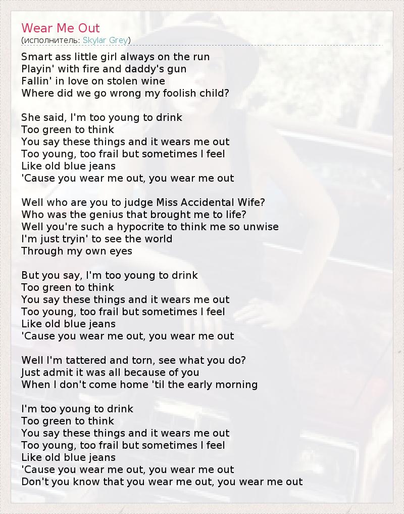 А как ты думаешь, о чем песня "Wear Me Out" ?