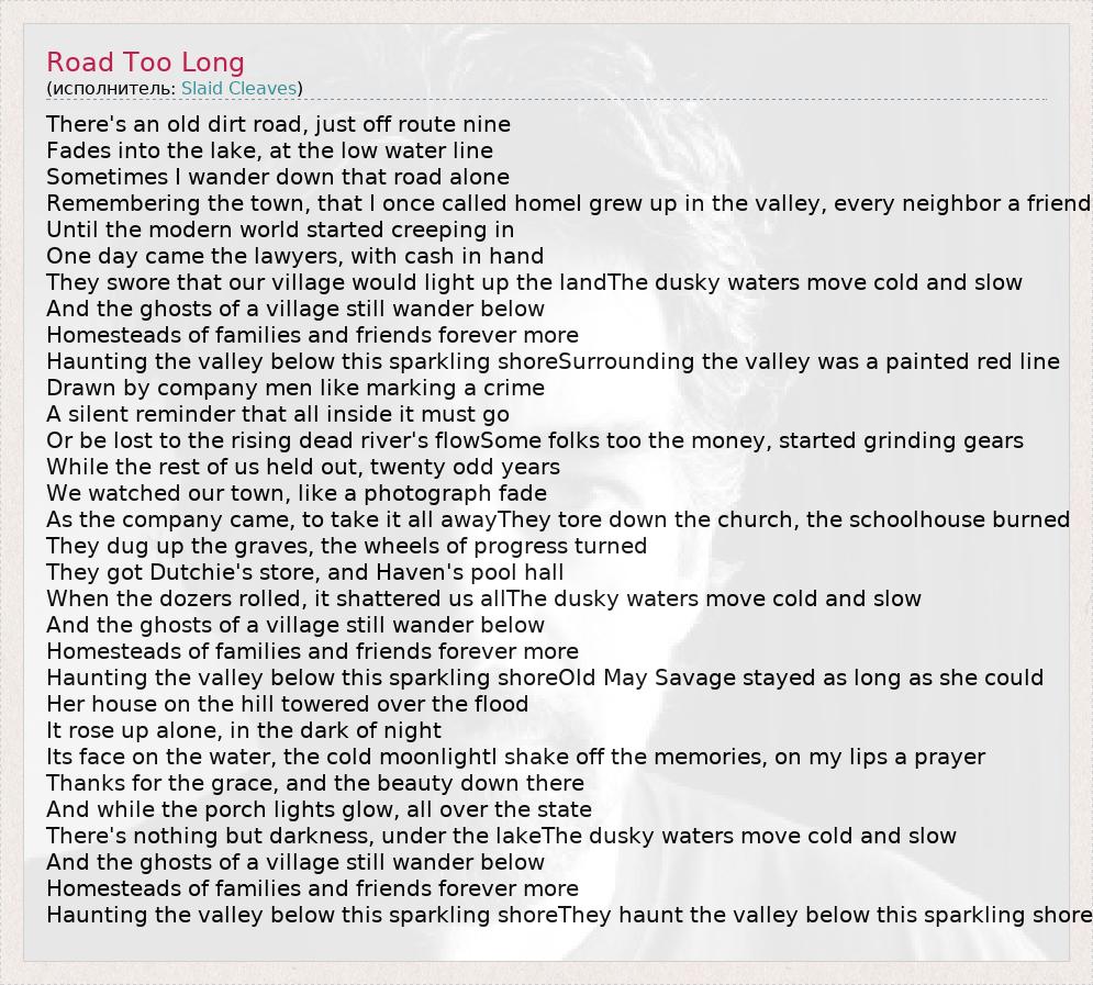 А как ты думаешь, о чем песня "Road Too Long" ?