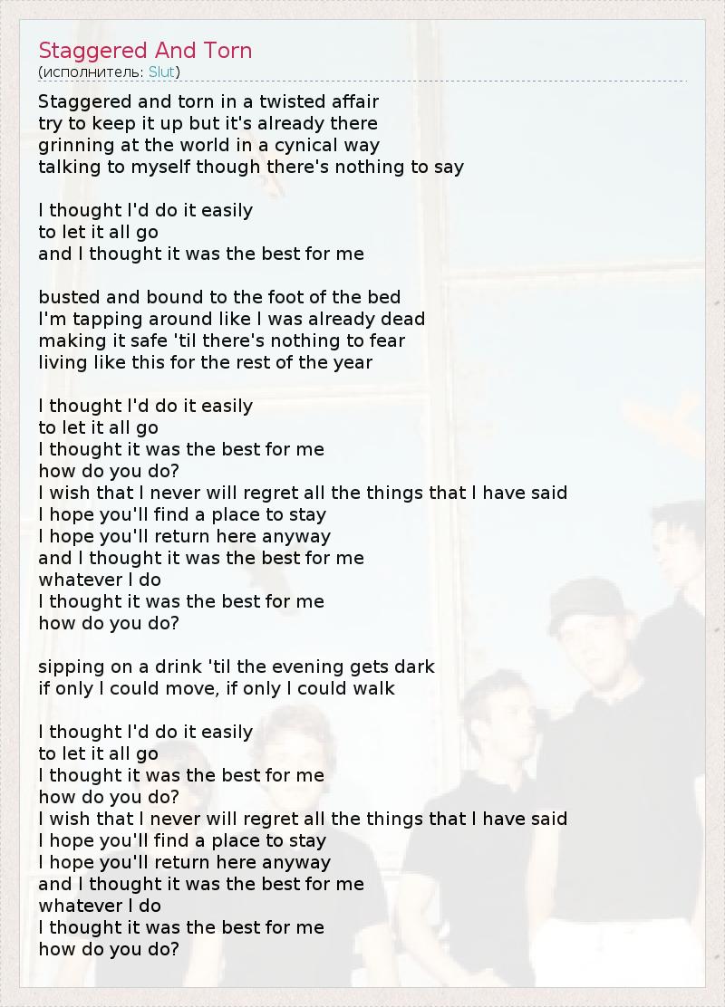 А как ты думаешь, о чем песня "Staggered And Torn" ?