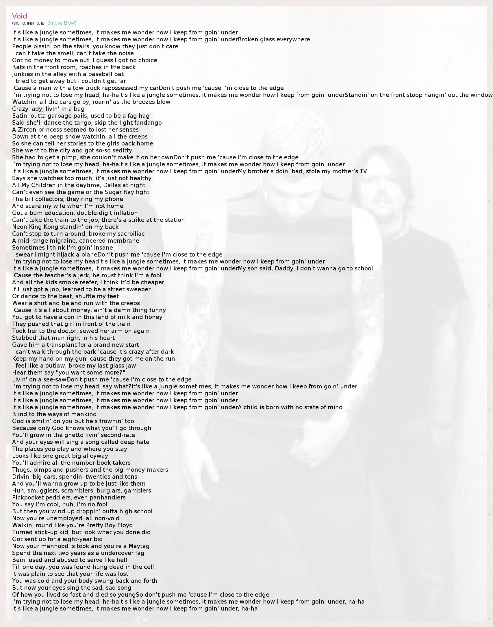 It's like a jungle sometimes, it makes me wonder how I keep from goin' underBroken glass everywhere