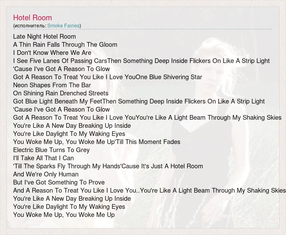А как ты думаешь, о чем песня "Hotel Room" ?