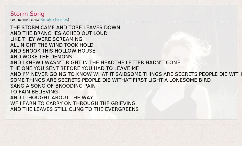 Это интересно:Smoke Fairies is a British blues and folk musical duo formed by Katherine Blamire and Jessica Davies.HistoryBlamire and Davies met at school in Sussex during the late 1990s. In 2002 they spent a year in New Orleans where they absorbed American blues music and when they returned to England they discovered British folk music at the Sidmouth Folk Week Festival while working as car park attendants.They later settled in Vancouver, Canada, for a year before returning to London to start performing.In 2007 Smoke Fairies headed on a UK tour in support of Bryan Ferry and released their debut single ‘Living With Ghosts’ the following year on Music For... продолжение