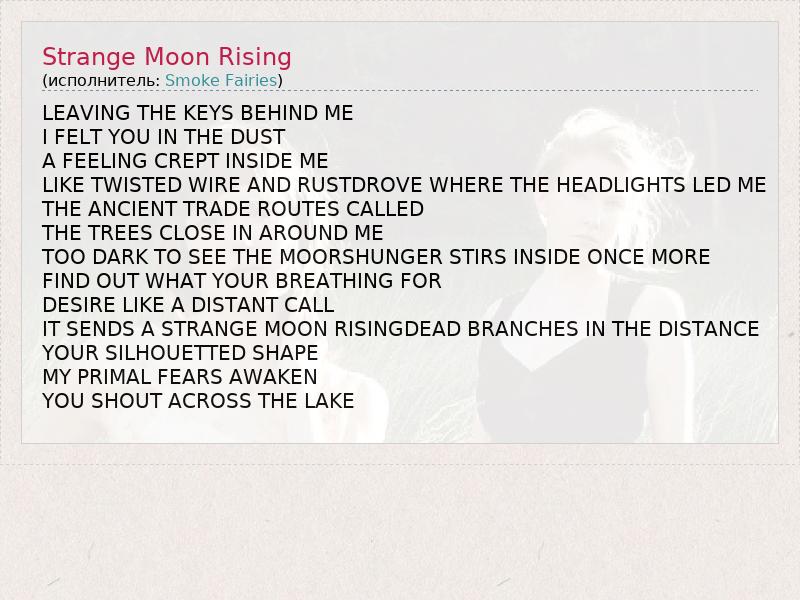 А как ты думаешь, о чем песня "Strange Moon Rising" ?