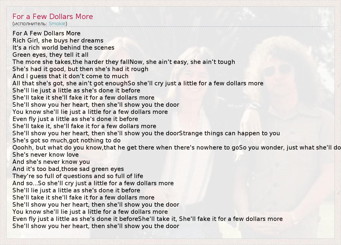 ГлавнаяИсполнителиSmokieFor a Few Dollars More