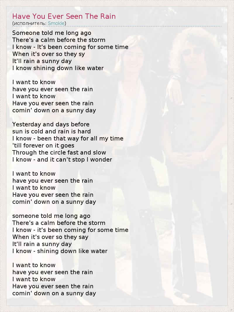 А как ты думаешь, о чем песня "Have You Ever Seen The Rain" ?