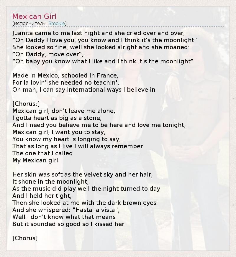 А как ты думаешь, о чем песня "Mexican Girl" ?