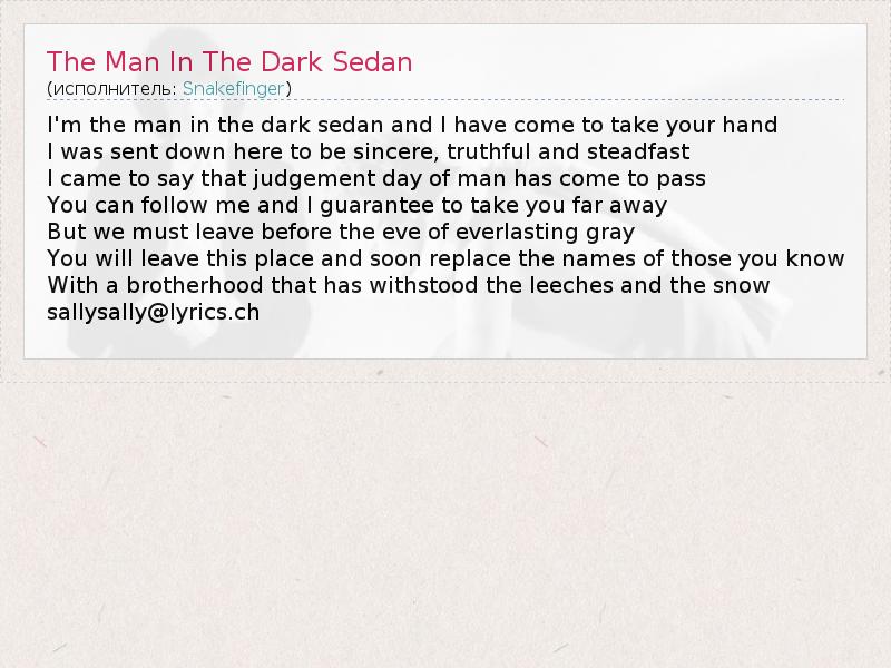 А как ты думаешь, о чем песня "The Man In The Dark Sedan" ?