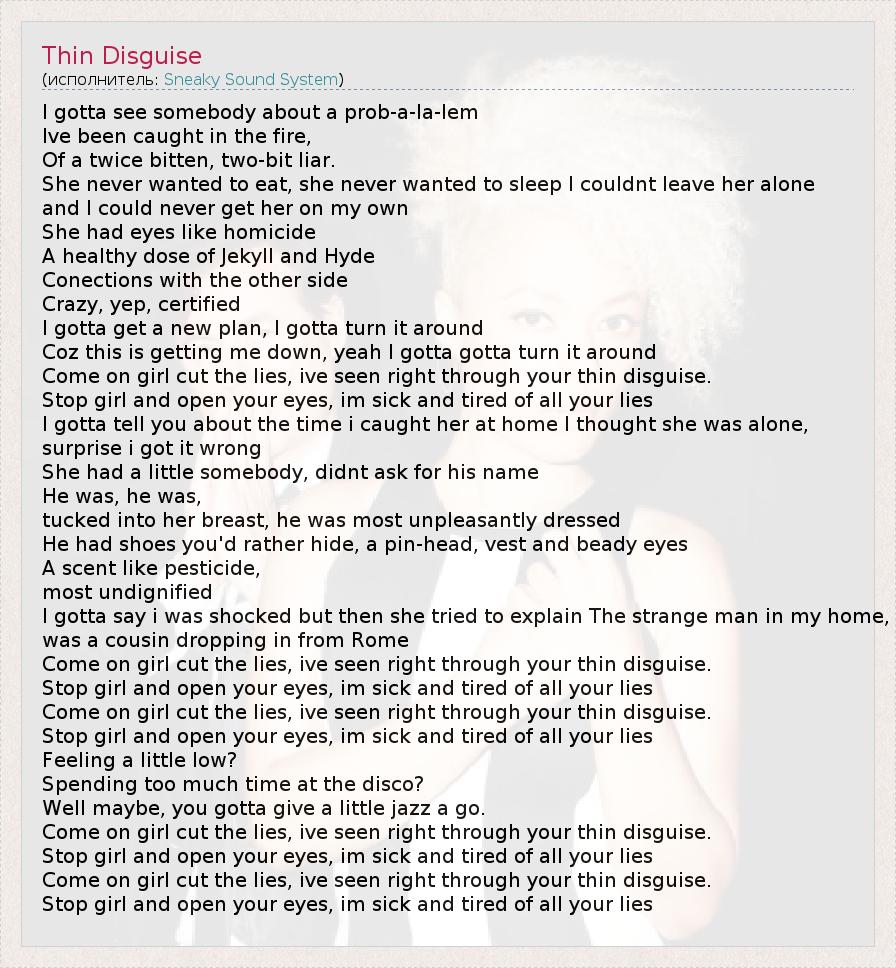 А как ты думаешь, о чем песня "Thin Disguise" ?
