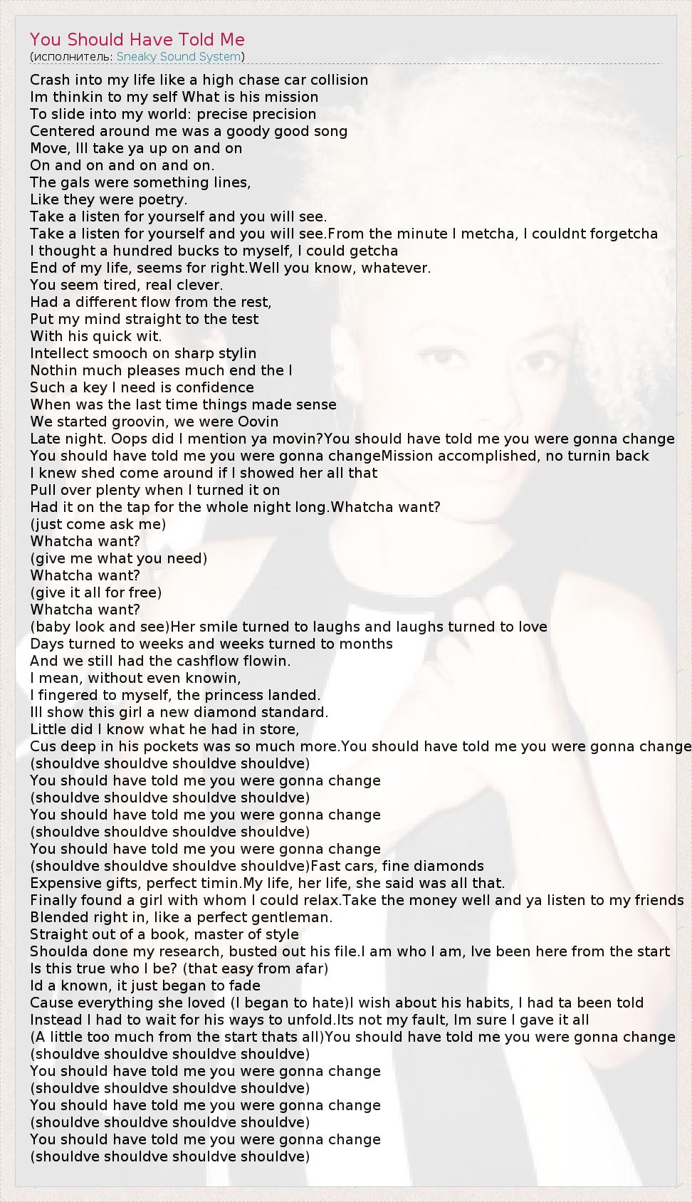 А как ты думаешь, о чем песня "You Should Have Told Me" ?