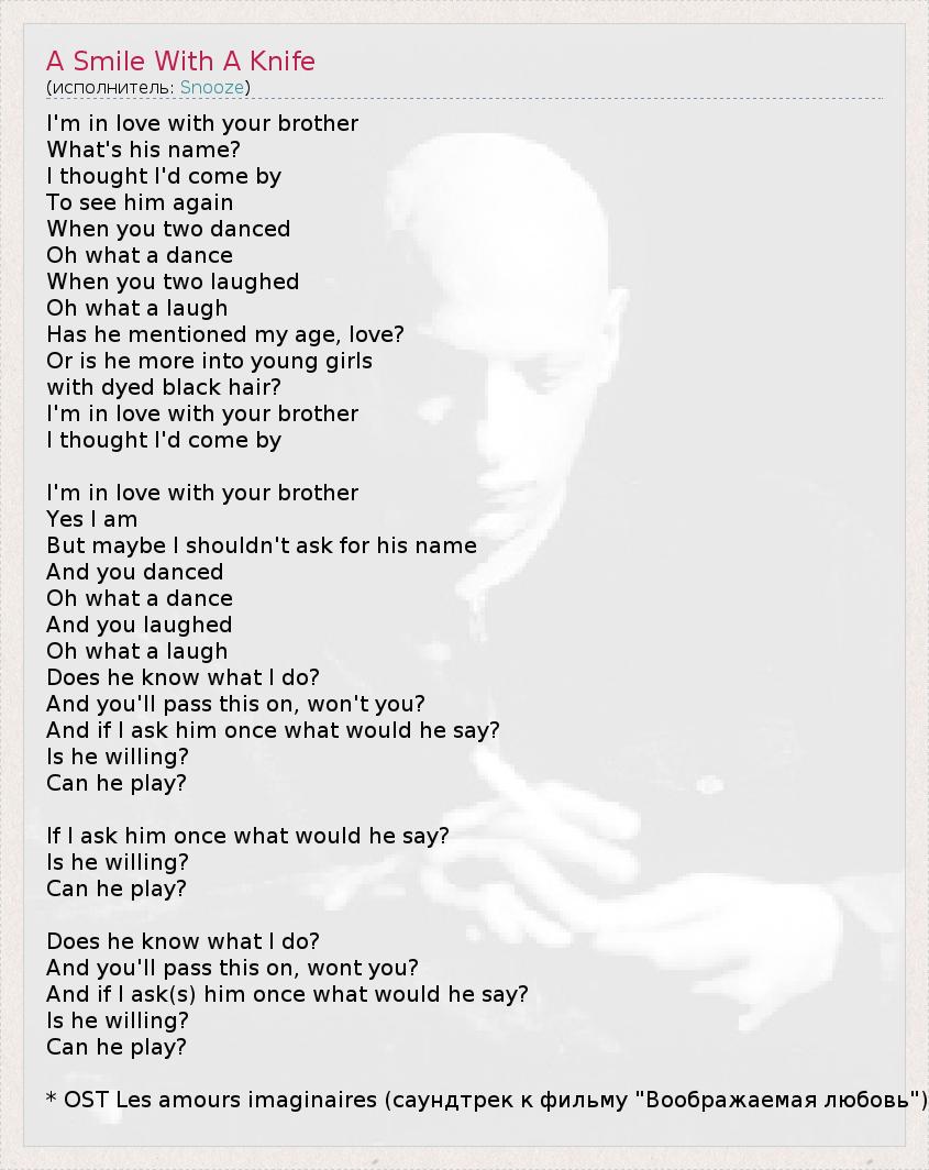 А как ты думаешь, о чем песня "A Smile With A Knife" ?