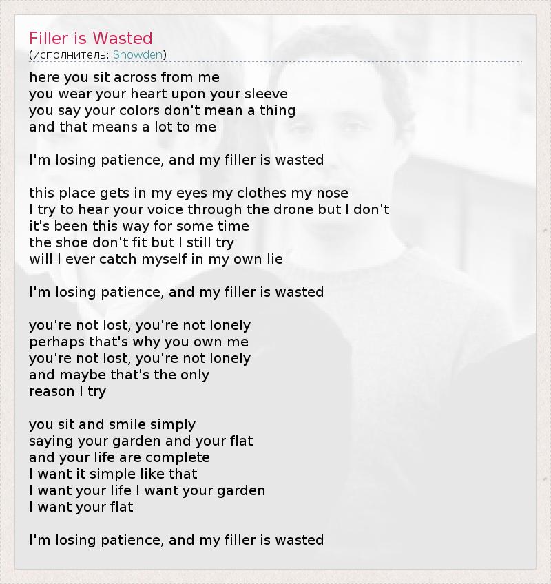 А как ты думаешь, о чем песня "Filler is Wasted" ?