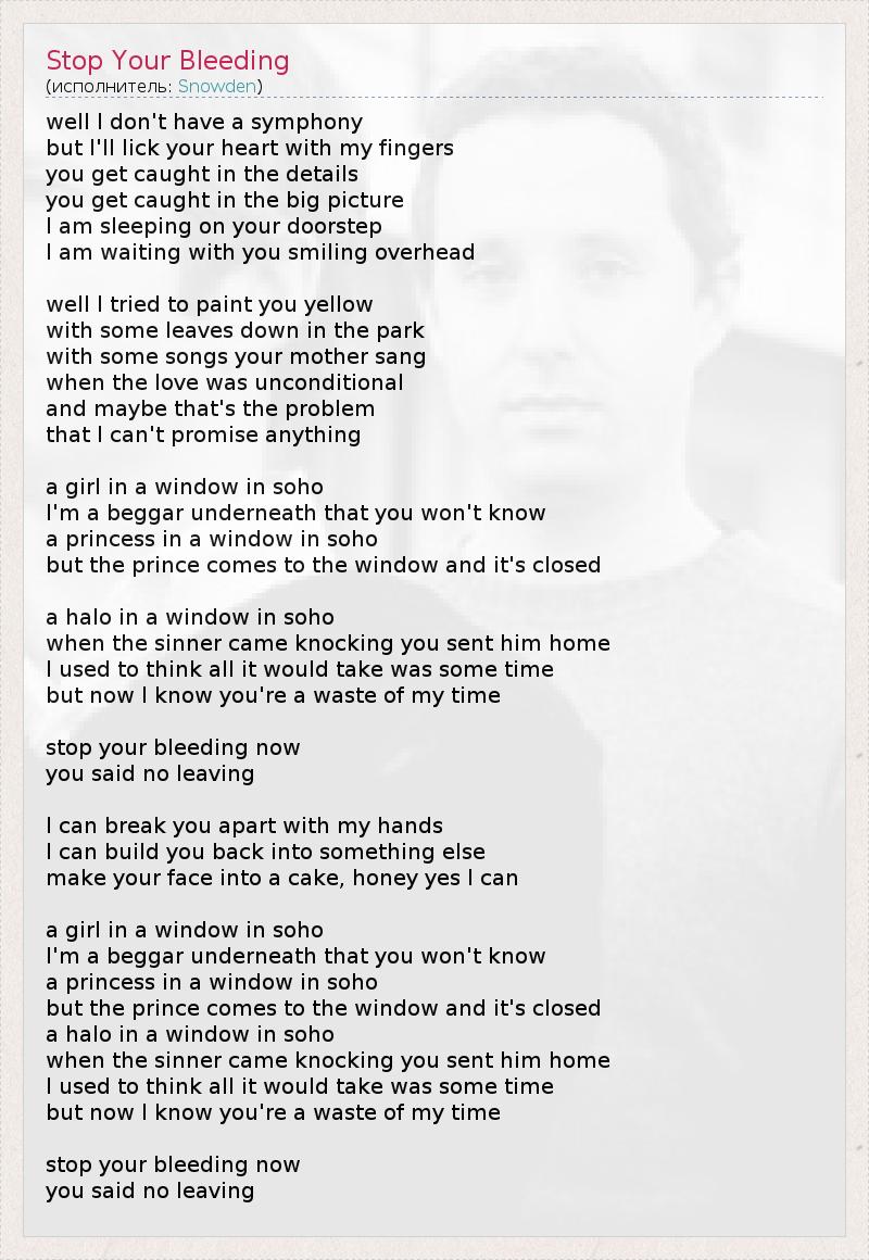 А как ты думаешь, о чем песня "Stop Your Bleeding" ?