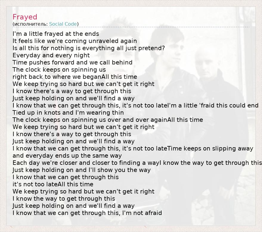 I know that we can get through this, it's not too lateI'm a little 'fraid this could end