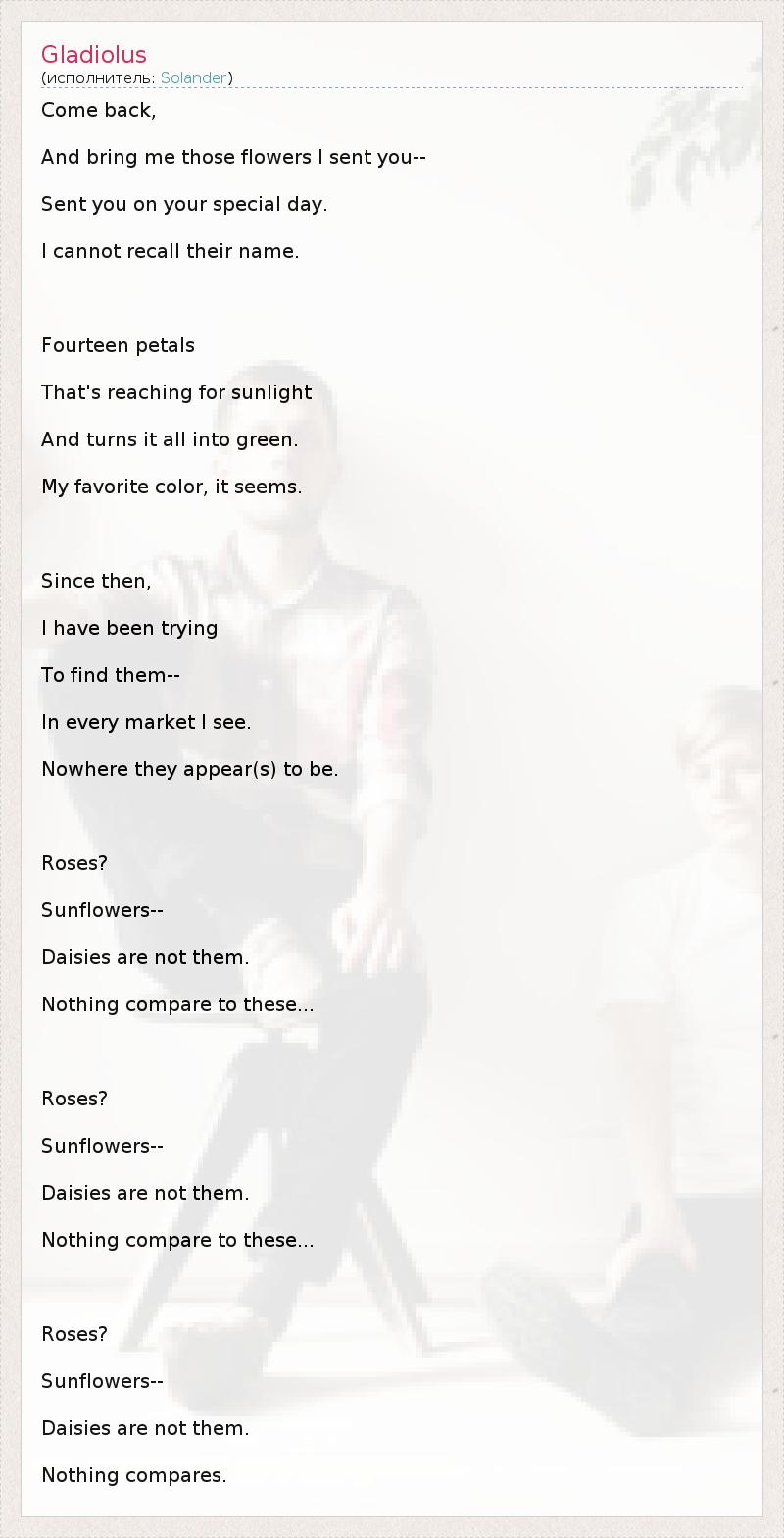А как ты думаешь, о чем песня "Gladiolus" ?