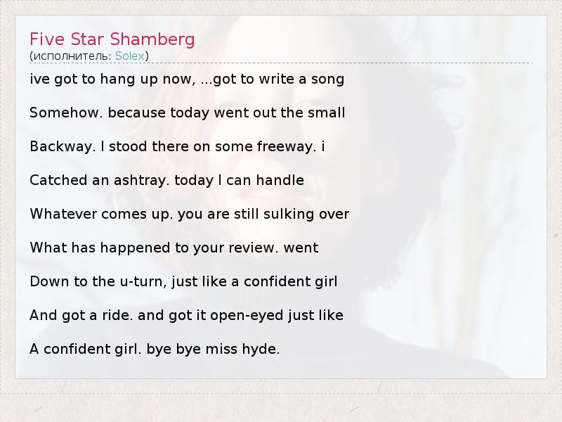 А как ты думаешь, о чем песня "Five Star Shamberg" ?