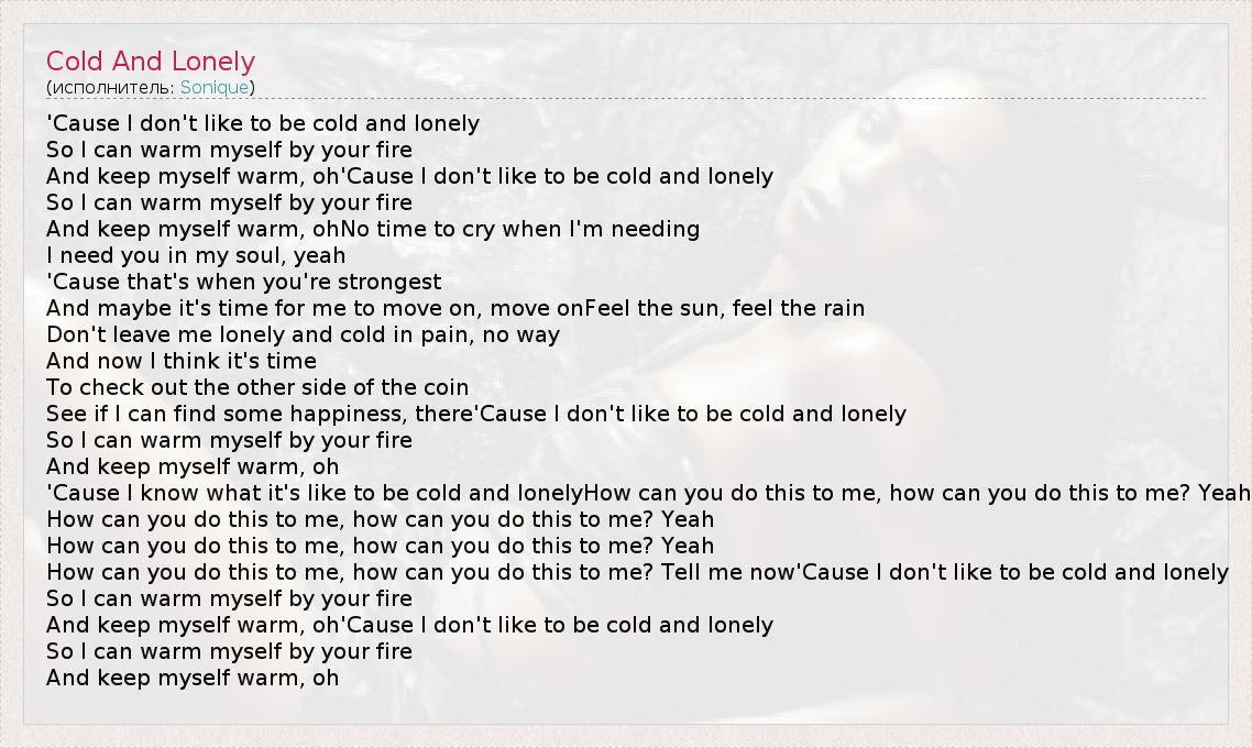 А как ты думаешь, о чем песня "Cold And Lonely" ?