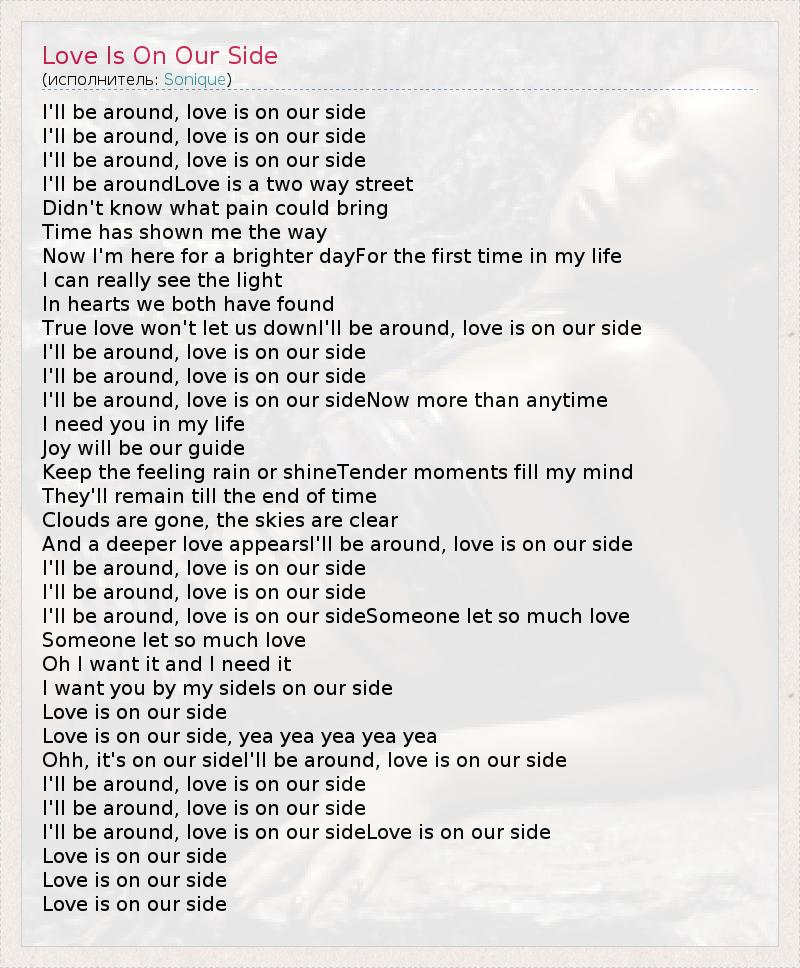 А как ты думаешь, о чем песня "Love Is On Our Side" ?