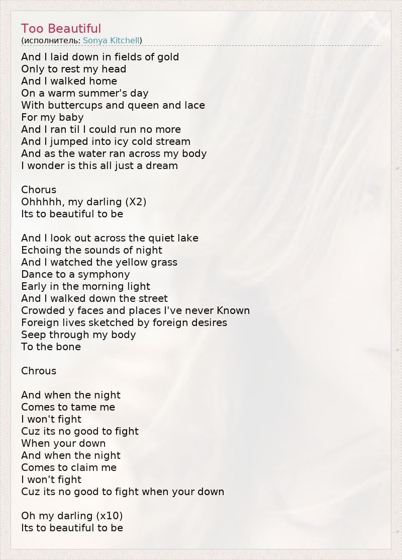 А как ты думаешь, о чем песня "Too Beautiful" ?