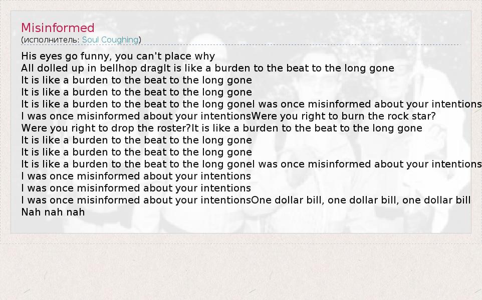 I was once misinformed about your intentionsOne dollar bill, one dollar bill, one dollar bill