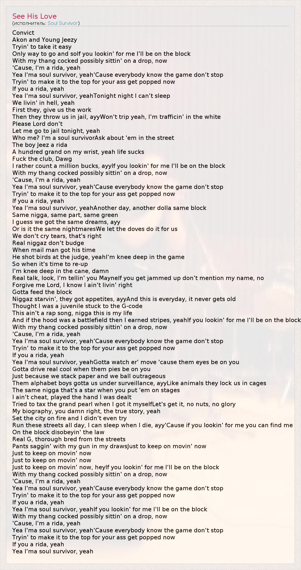 Yea I'ma soul survivor, yeah'Cause everybody know the game don't stop