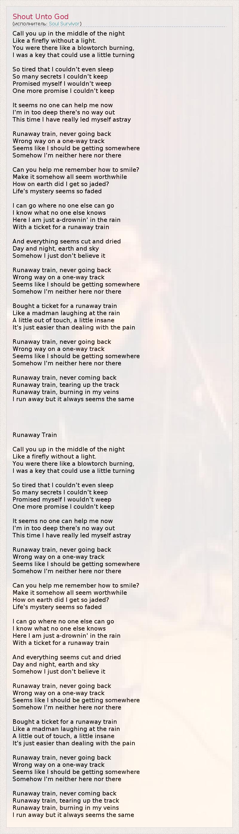 Сбежавший поезд горит в моих жилах,