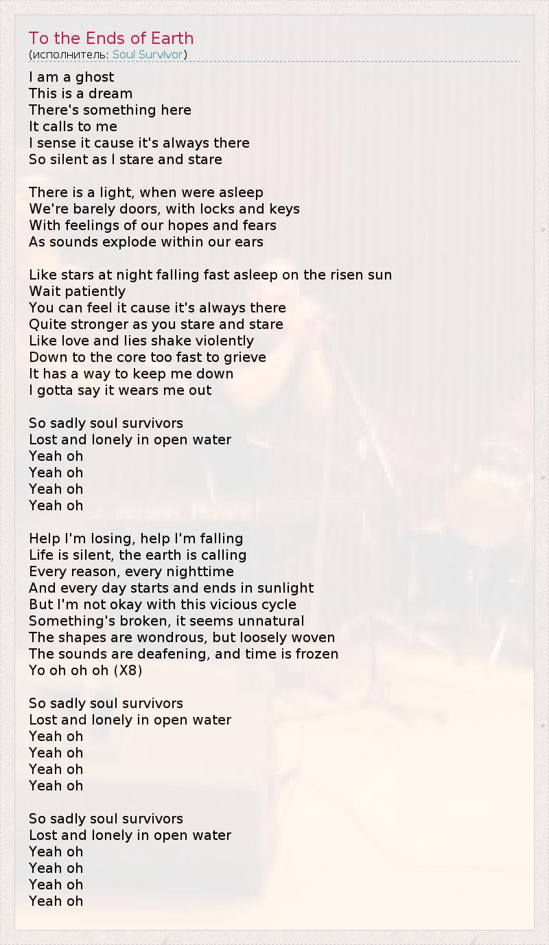 А как ты думаешь, о чем песня "To the Ends of Earth" ?