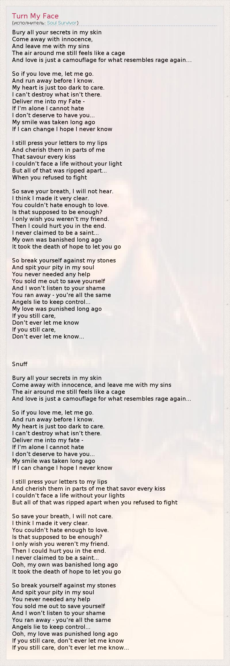 А как ты думаешь, о чем песня "Turn My Face" ?