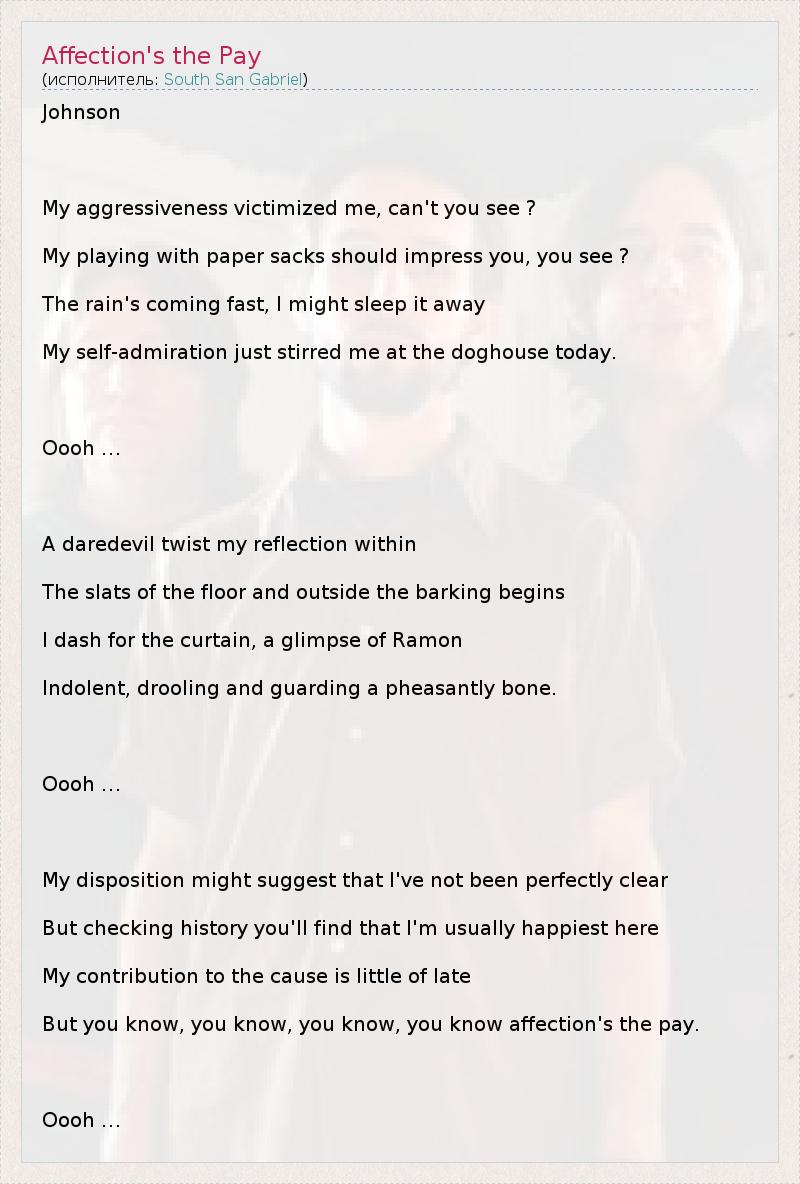 А как ты думаешь, о чем песня "Affection's the Pay" ?