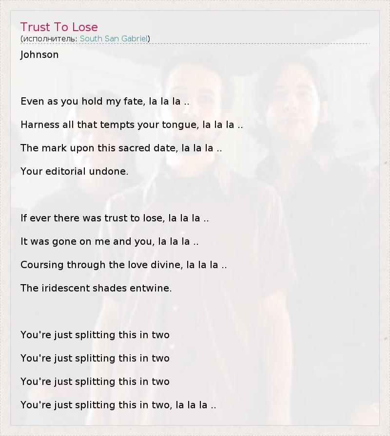 А как ты думаешь, о чем песня "Trust To Lose" ?