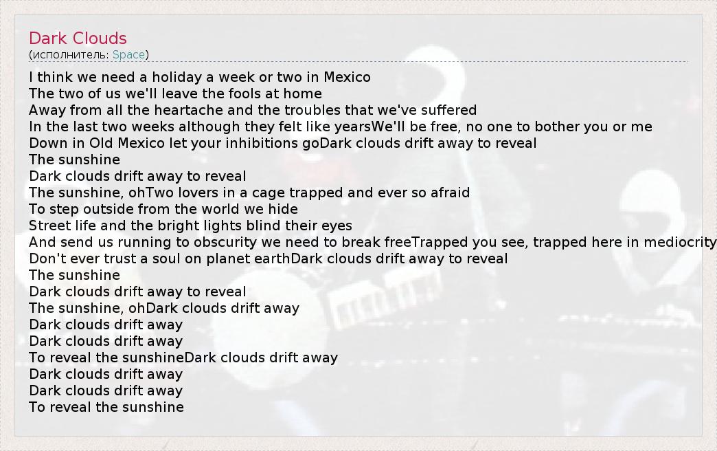 А как ты думаешь, о чем песня "Dark Clouds" ?