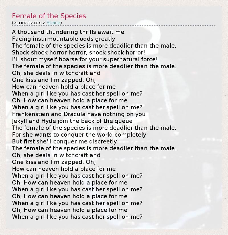 А как ты думаешь, о чем песня "Female of the Species" ?