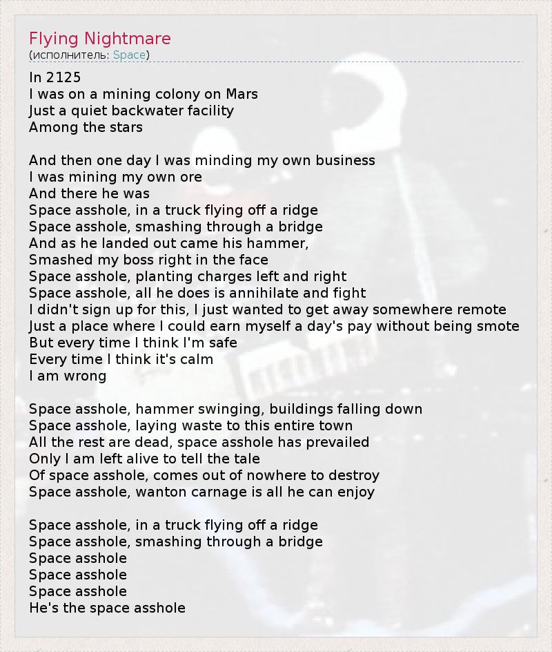 А как ты думаешь, о чем песня "Flying Nightmare" ?