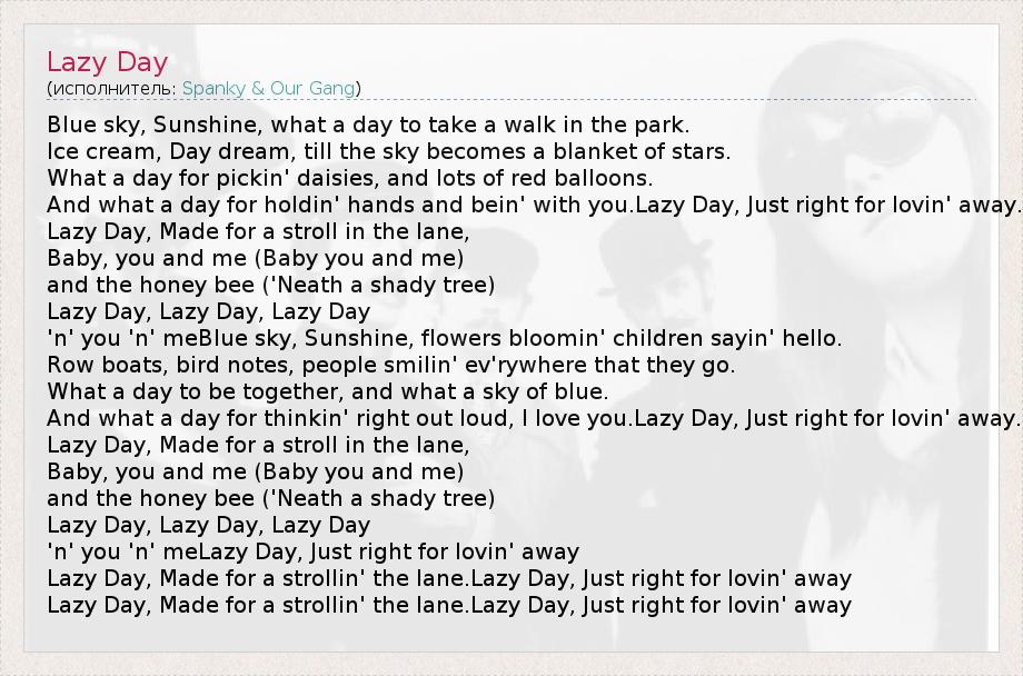 А как ты думаешь, о чем песня "Lazy Day" ?