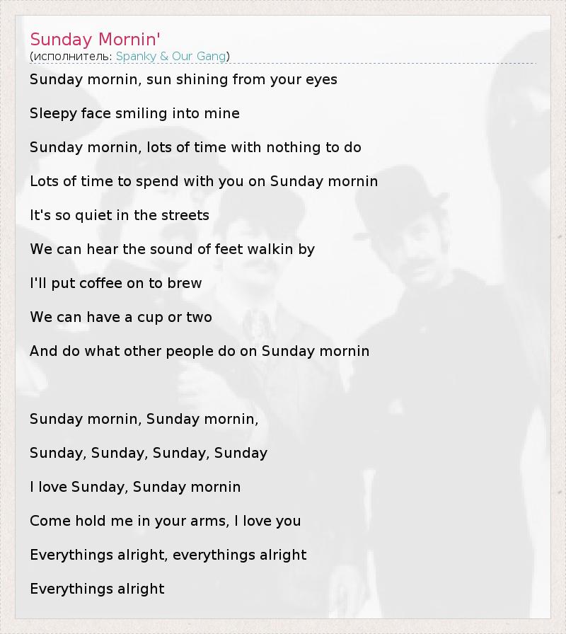 А как ты думаешь, о чем песня "Sunday Mornin'" ?