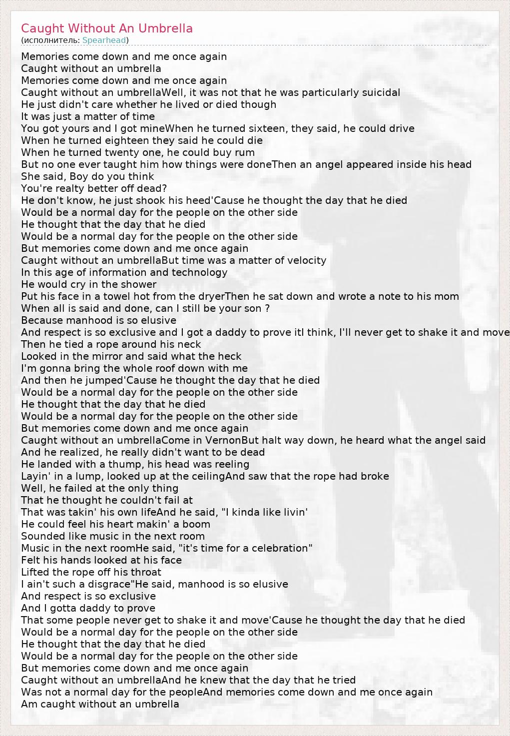 ГлавнаяИсполнителиSpearheadCaught Without An Umbrella