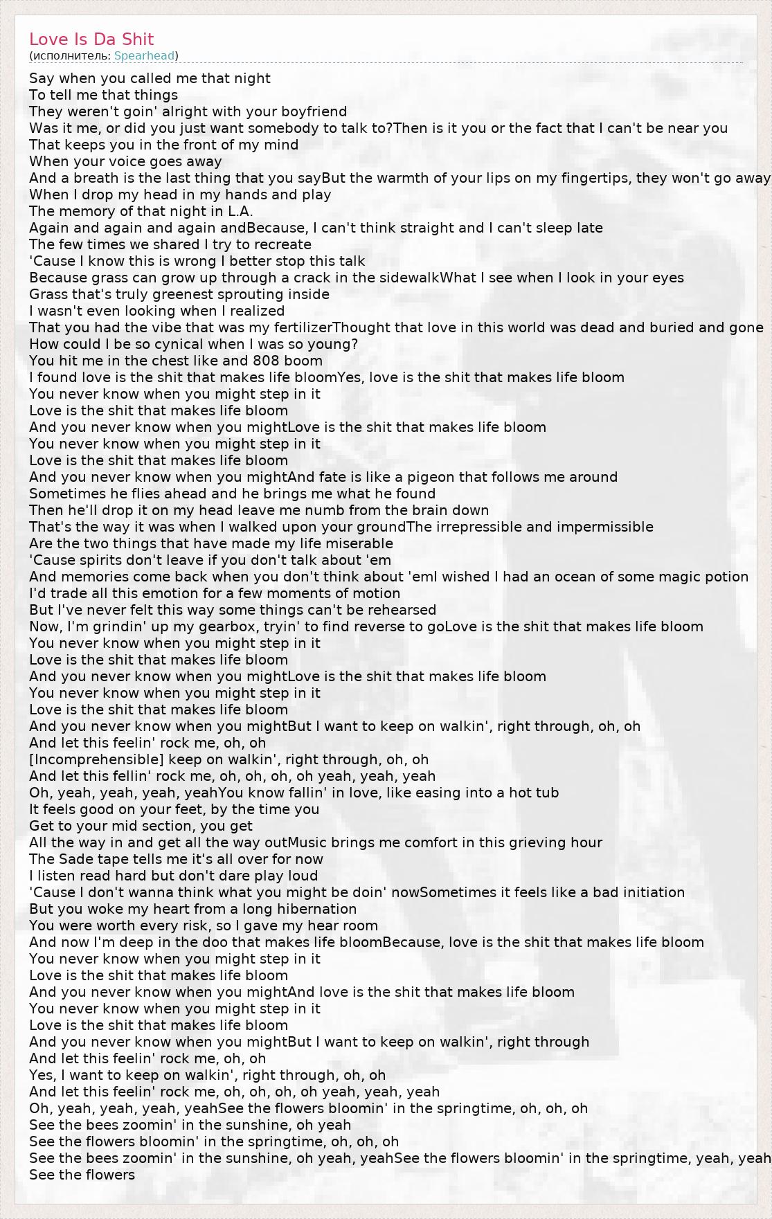 А как ты думаешь, о чем песня "Love Is Da Shit" ?