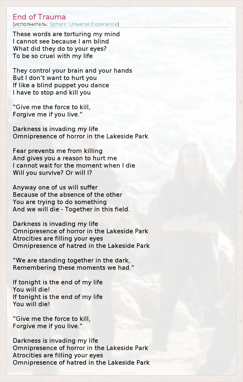 А как ты думаешь, о чем песня "End of Trauma" ?